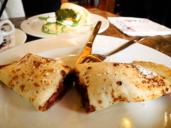 切開以後感覺像是鬆餅拿來捲成像麥當勞蘋果派那樣~