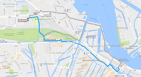 大概就是阿姆斯特丹中央車站租自行車騎20分鐘左右的距離